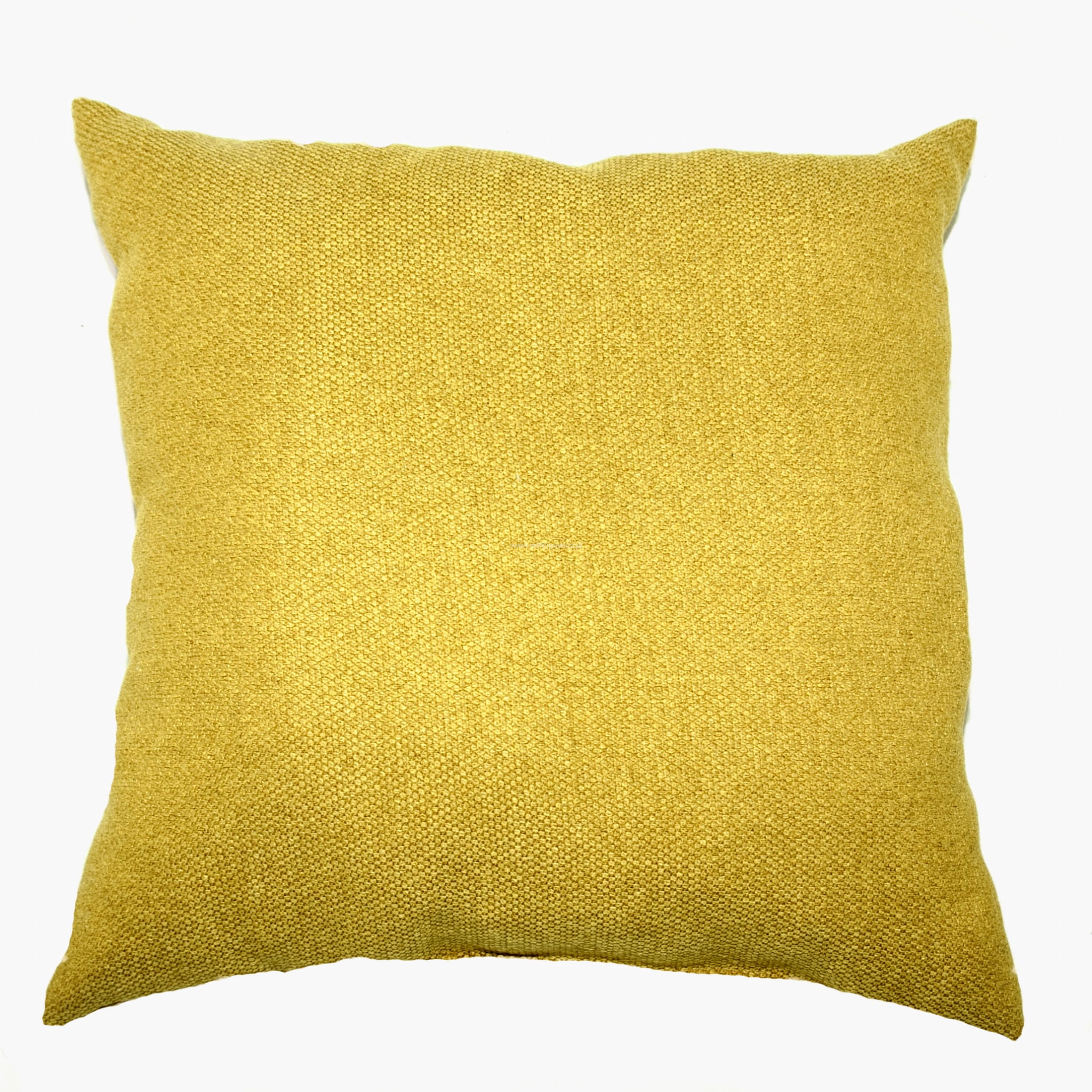 Poduszka dekoracyjna o średnim splocie bawełny w kolorze musztardowym.