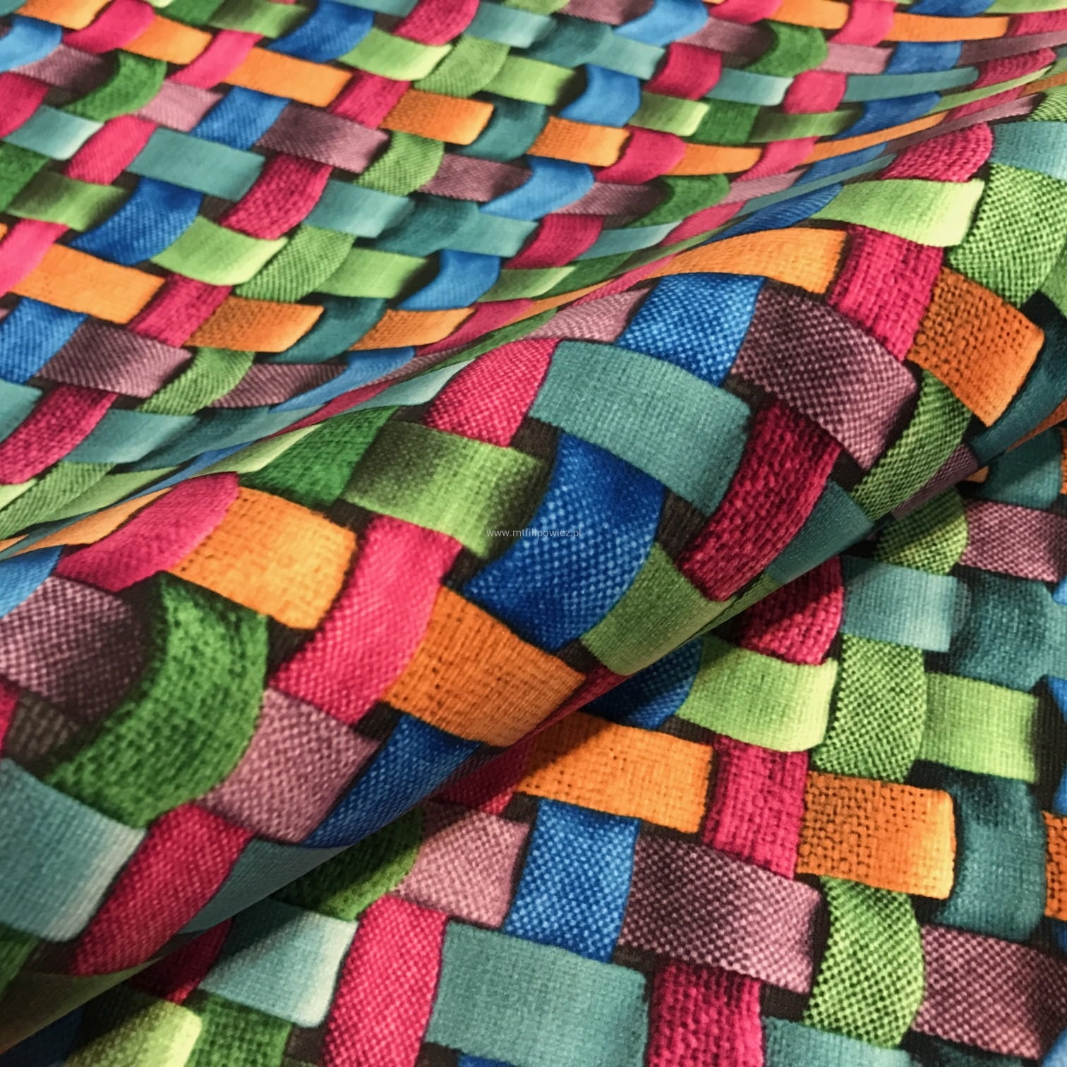 Tkanina nie jest zrobiona z pasków to kolorowy nadruk tworzy niesamowity głęboki efekt trójwymiaru.