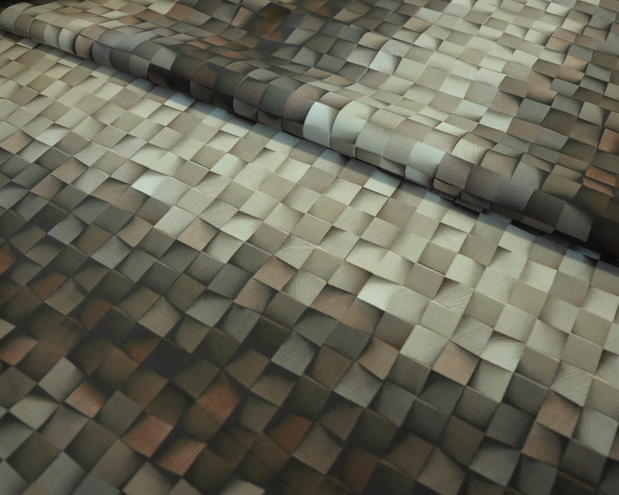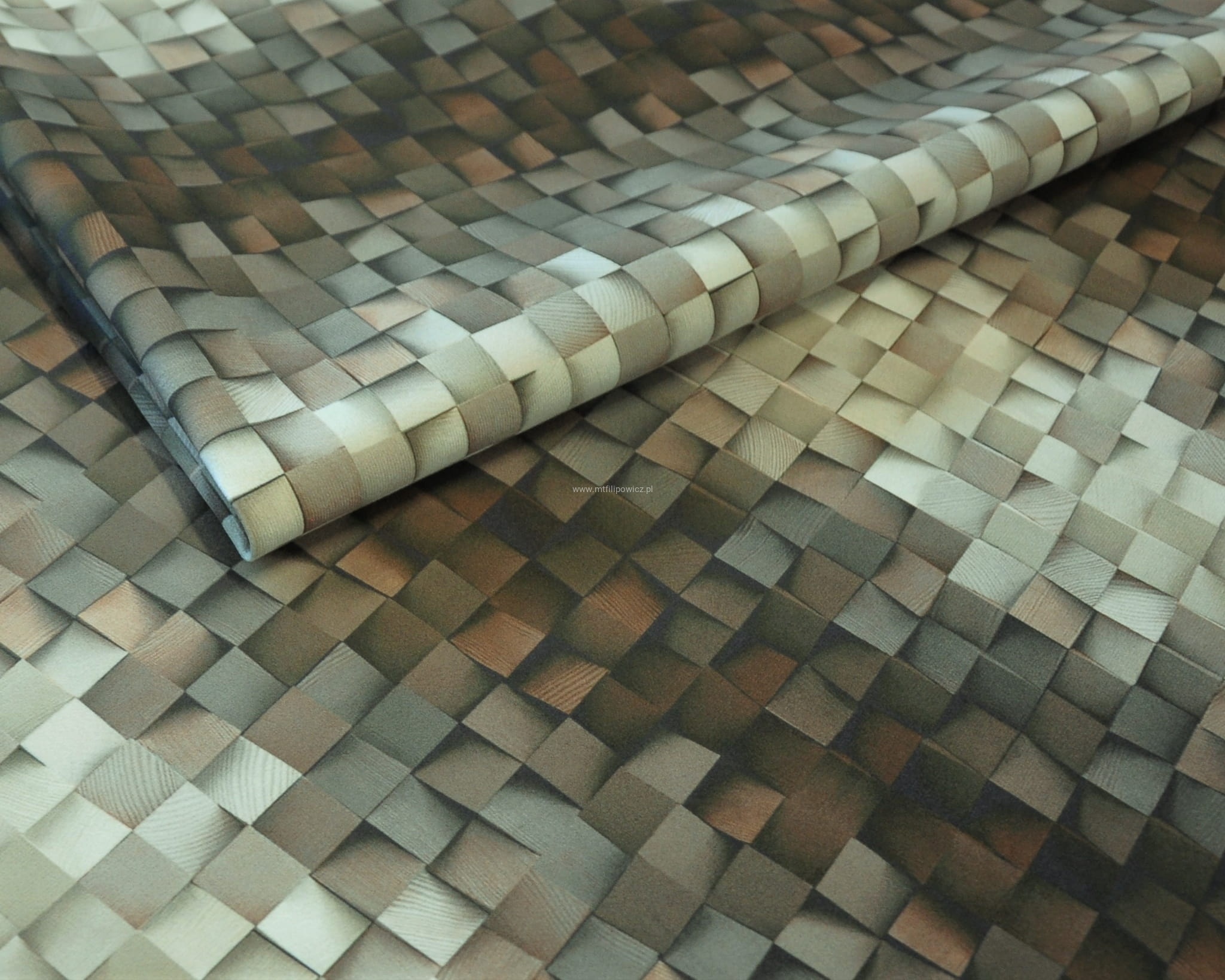 TKANINA OBICIOWA 3D KOSTKI DRZEWA