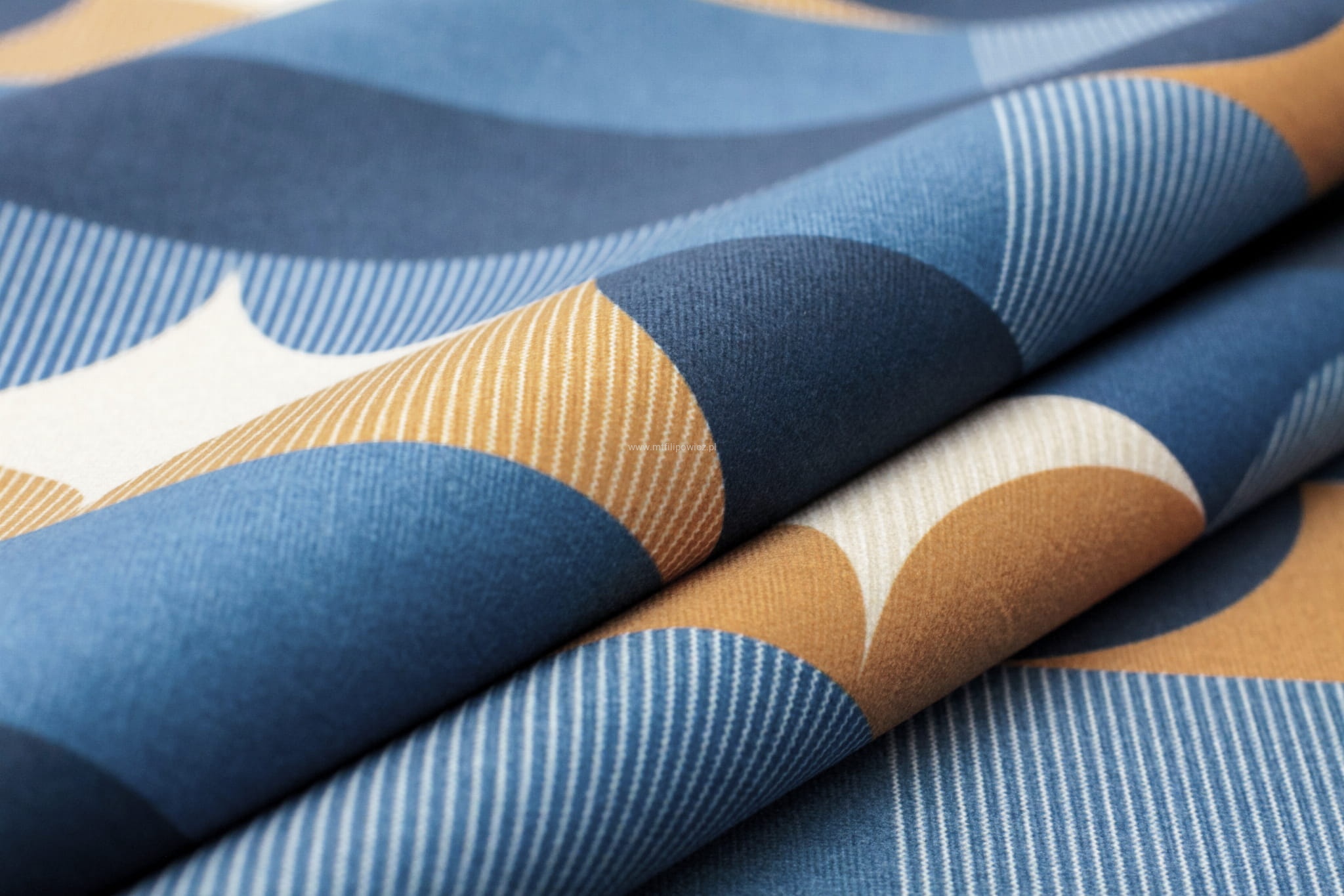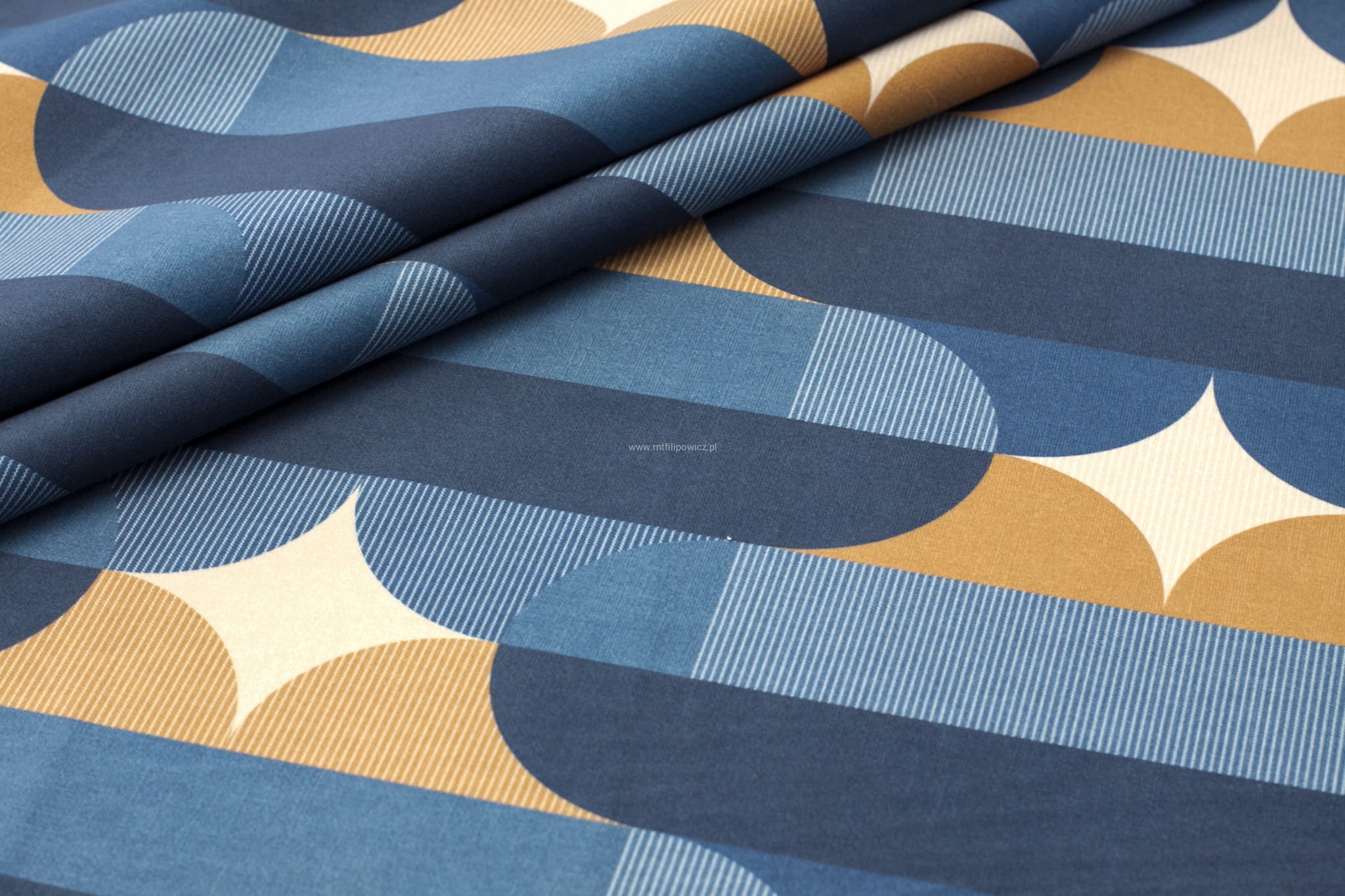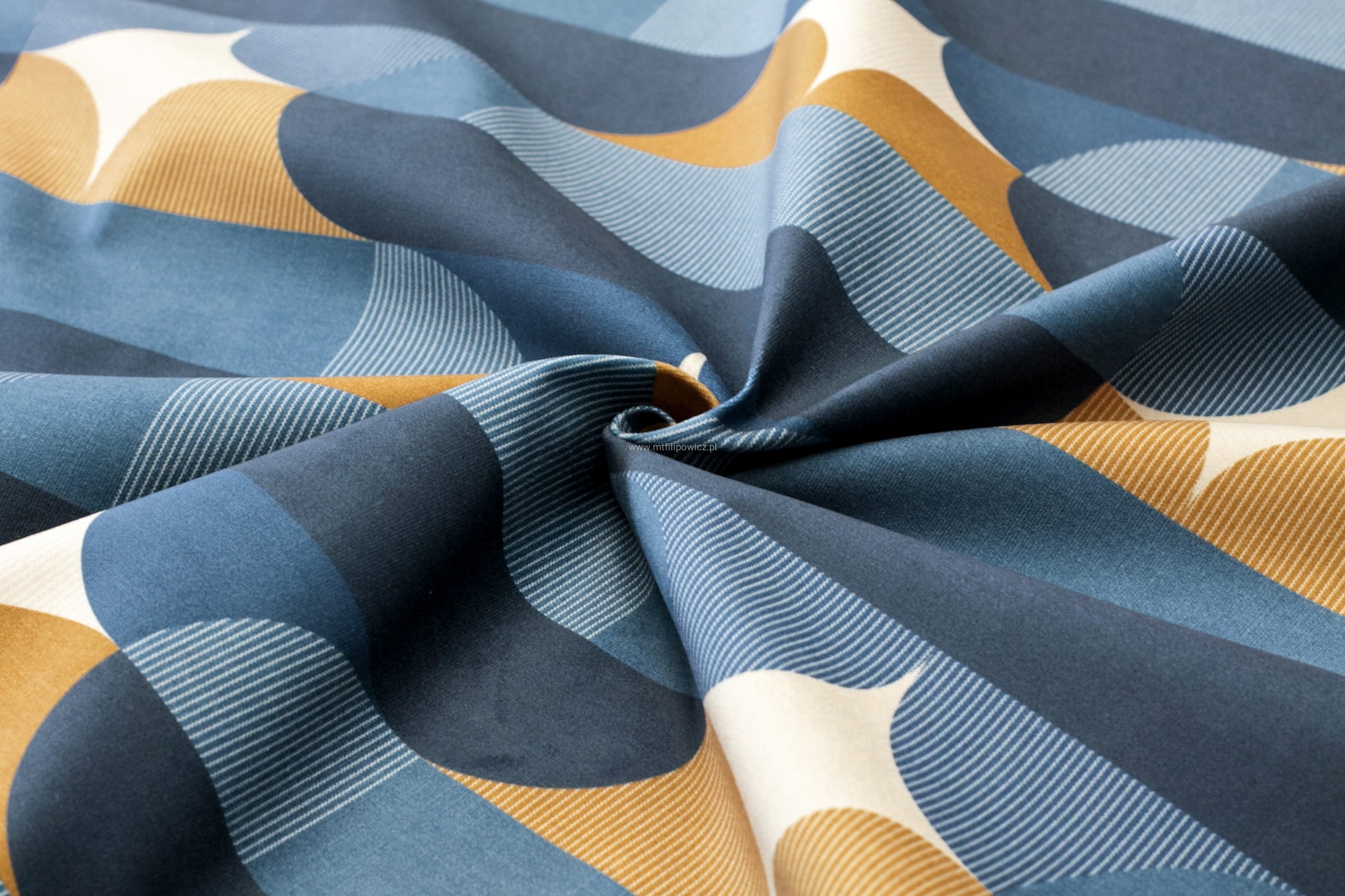 Artdeco to wzór w odcieniach niebieskiego i beżu nadrukowany na mocnym, gęstym welurze.