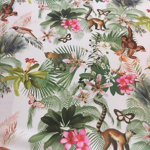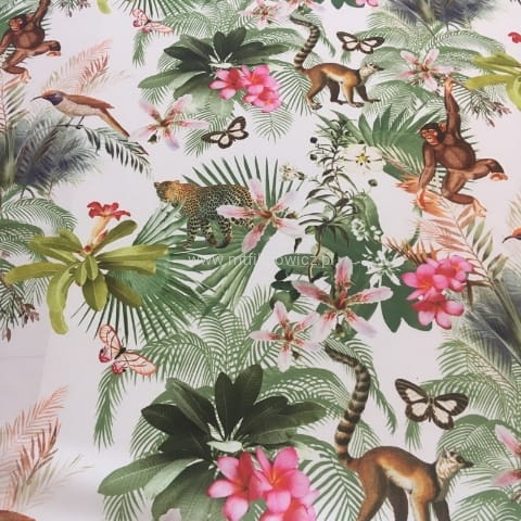 Tkanina obiciowa i dekoracyjna Czarodziejski ogród 2. Posiada wesoły, nadrukowany motyw dziecięcy, za sprawą którego na niejednej buzi pojawi się szeroki uśmiech.