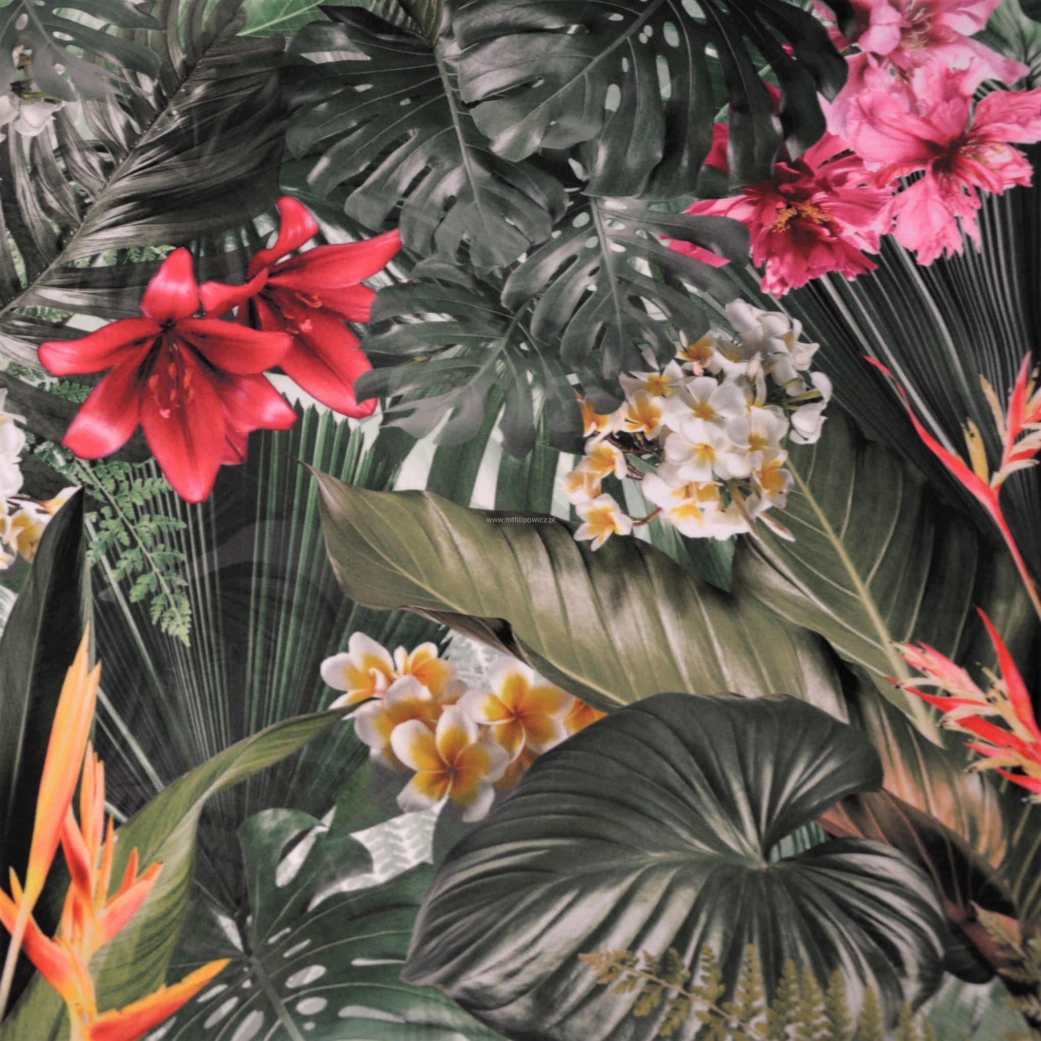 Welurowa tkanina obiciowa, przyjemna w dotyku - Indochiny, posiada urzekający, naturalny motyw florystyczny. Przypominający bajeczną roślinność dżungli - na Półwyspie Indochińskim.