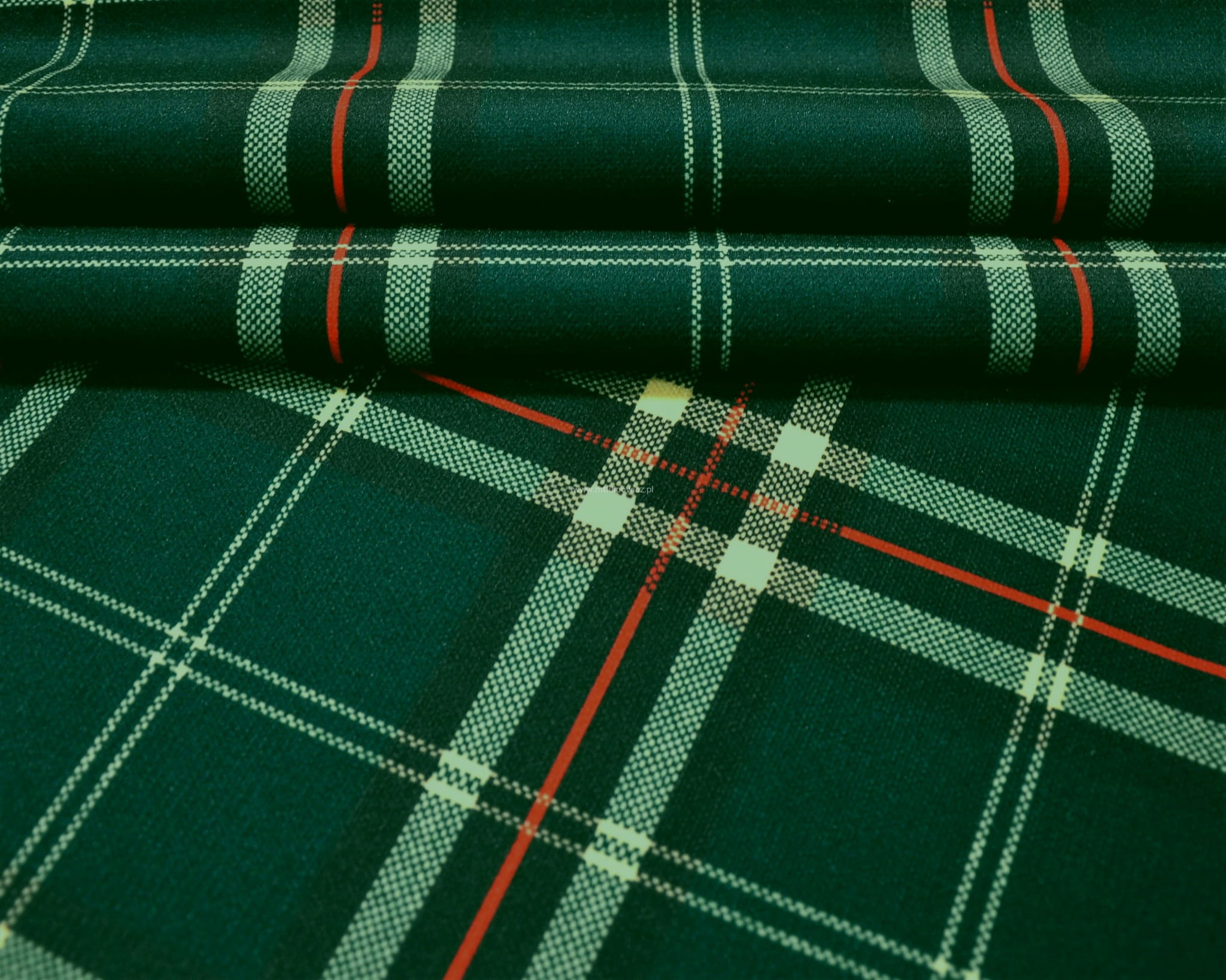 Tkanina Szkocka krata to gruby welur z apreturą z nadrukowanym unikatowym wzorem - imitującym szkocką kratę.