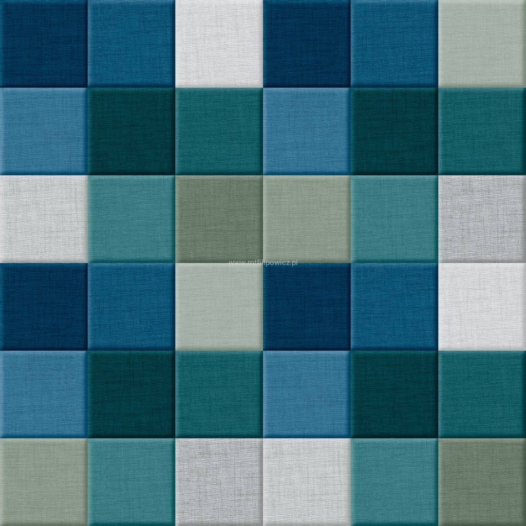 Kwadraty turkusowe to gładka tkanina z nadrukowanym wzorem geometrycznym 3D kwadratów, który tworzy niesamowity głęboki efekt trójwymiaru.