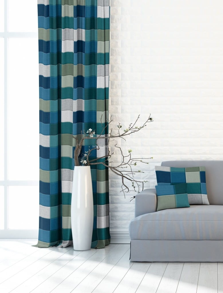 TKANINA OBICIOWA KWADRATY TURKUSOWE