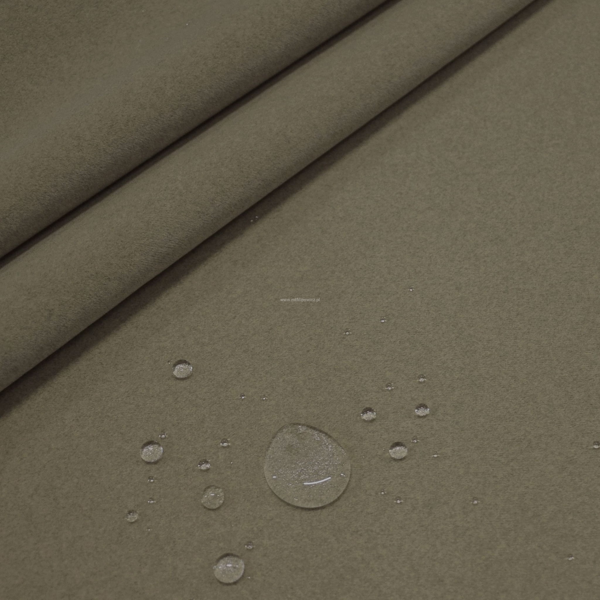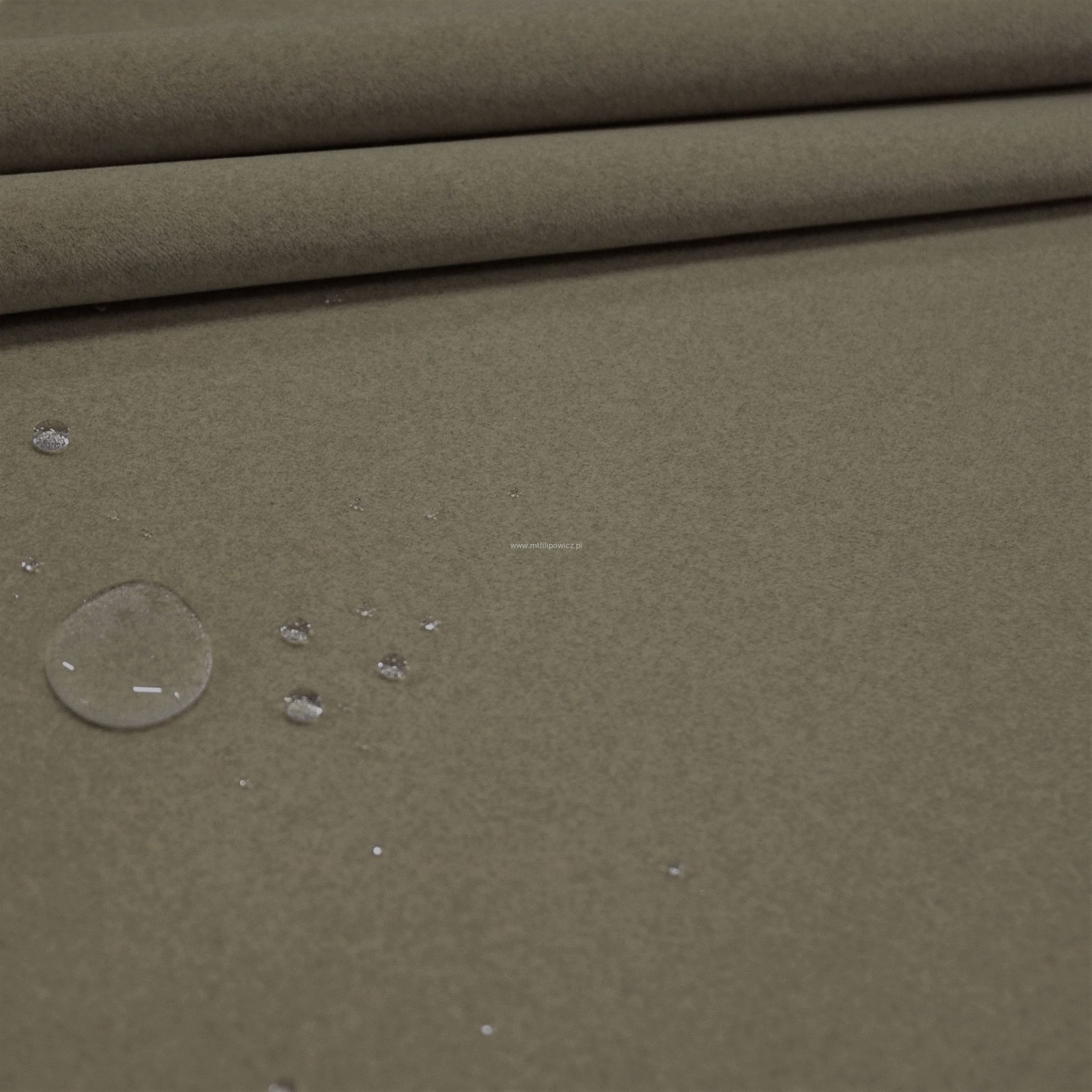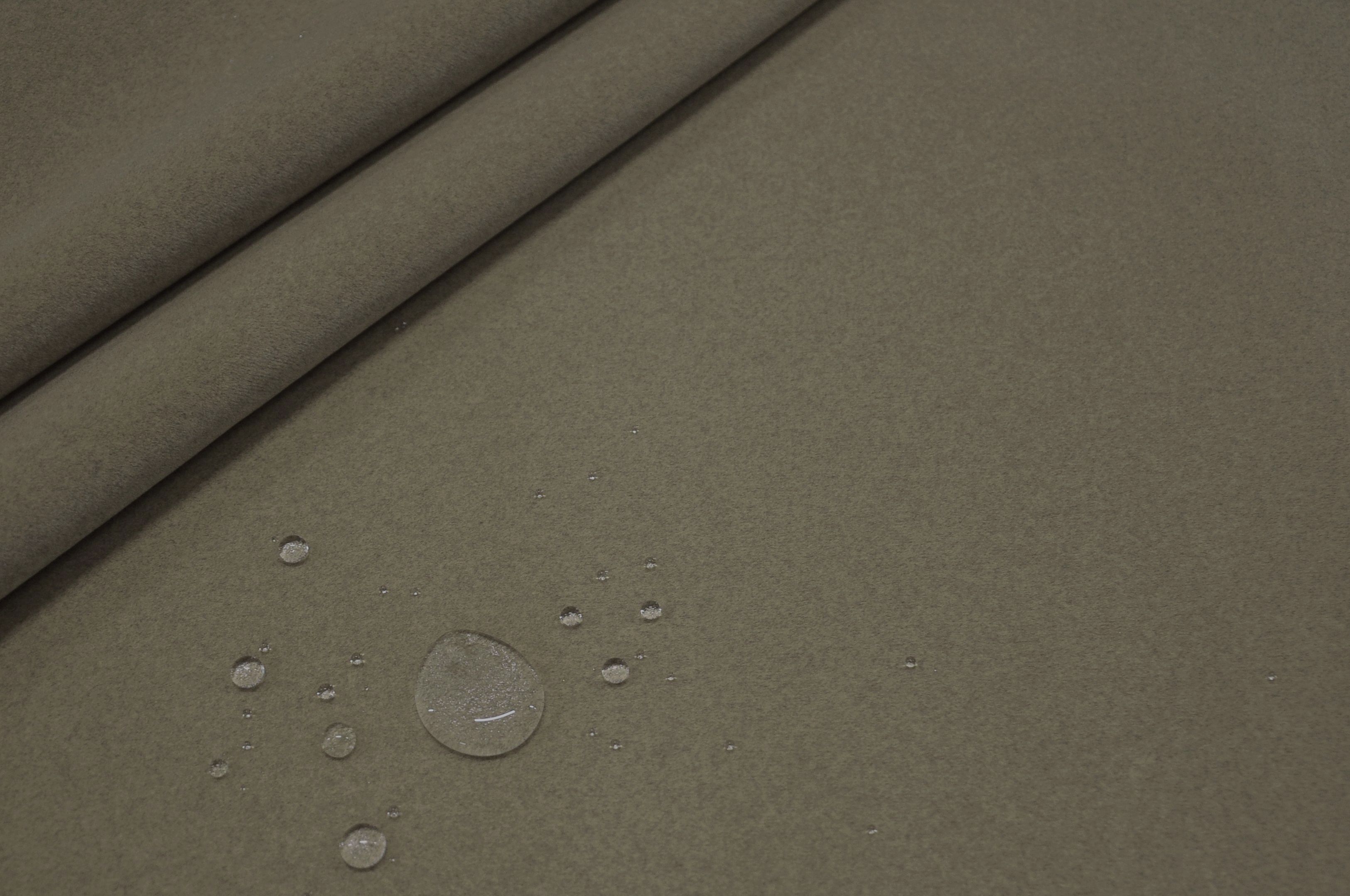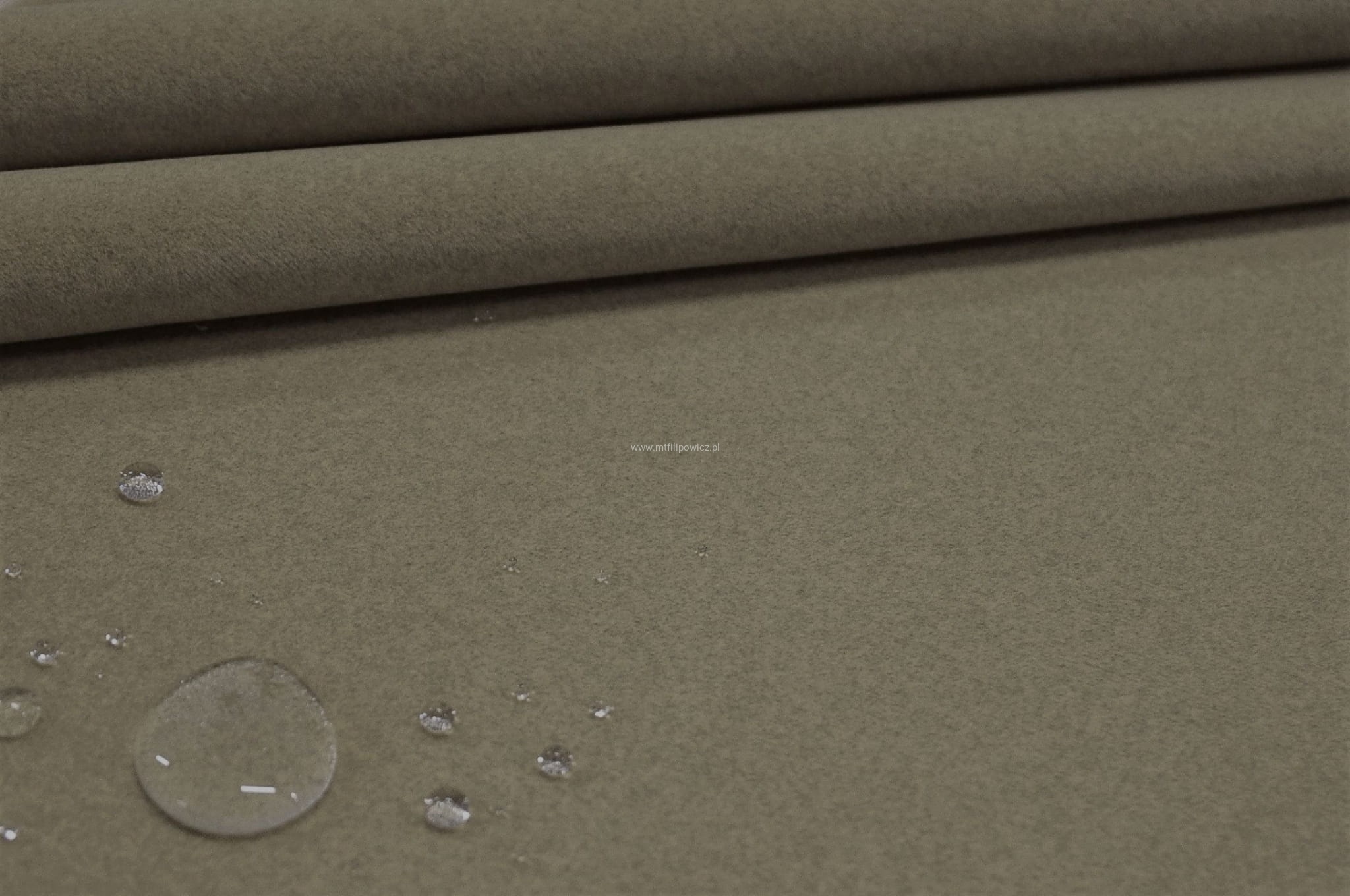 Prawdziwie plamoodporna tkanina obiciowa z apreturą Jaguar Lana Mushroom (odcień brązu). Przypomina najwyższej jakości filc a jednocześnie ma właściwości tkaniny tapicerskiej.