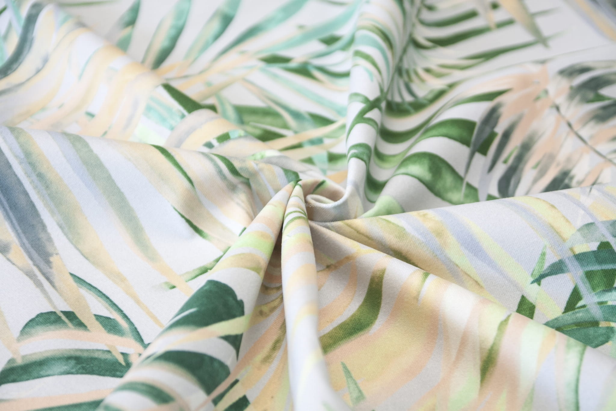 Welurowa, miękka i bardzo przyjemna tkanina tapicerska. Wzór to liście w różnych odcieniach zieleni, żółtego oraz delikatnego koralu na szarym tle. Pastelowe odcienie liści i stonowane szare tło nadadzą meblom lekkości i nowoczesności.