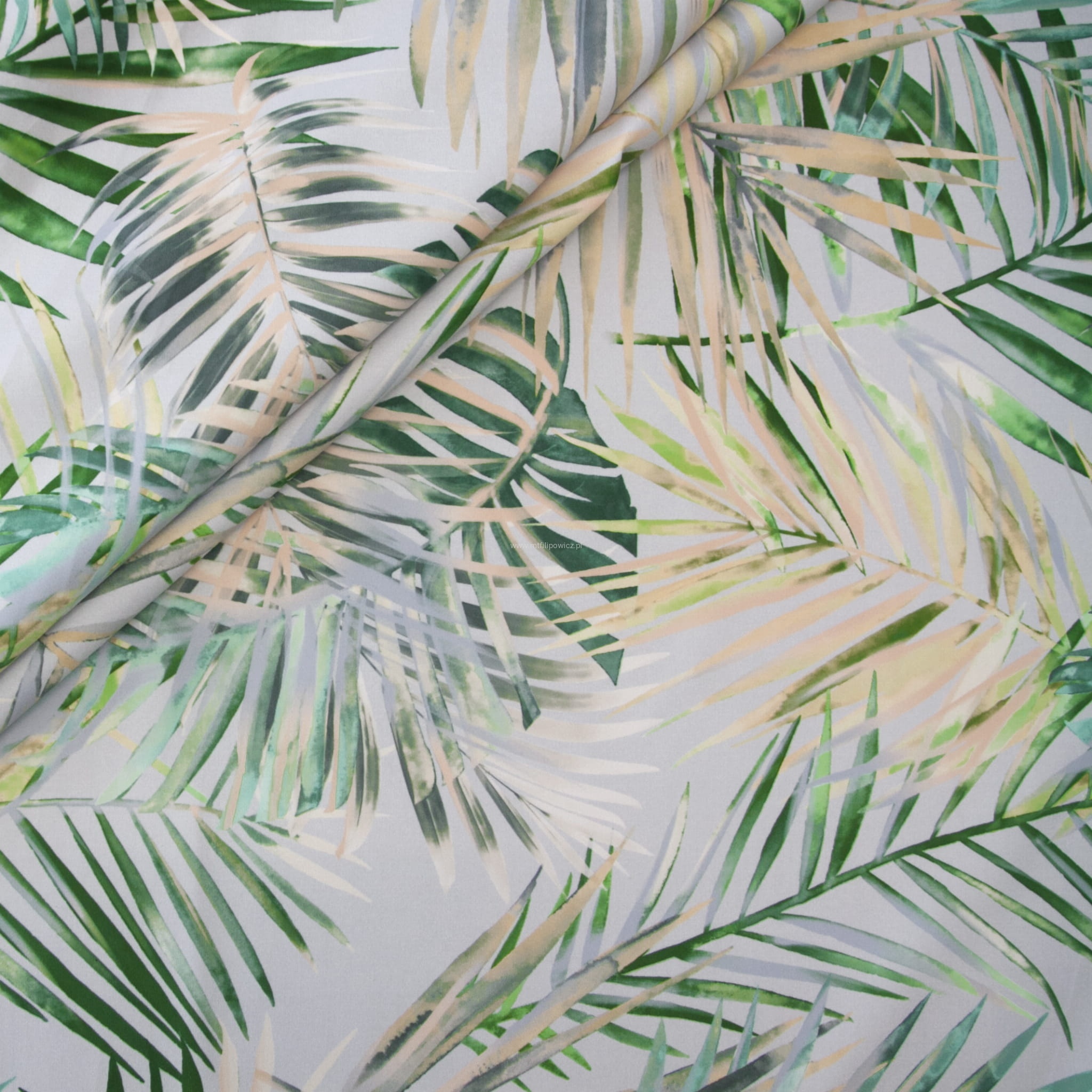 TKANINA OBICIOWA LIŚCIE NA SZARYM TLE