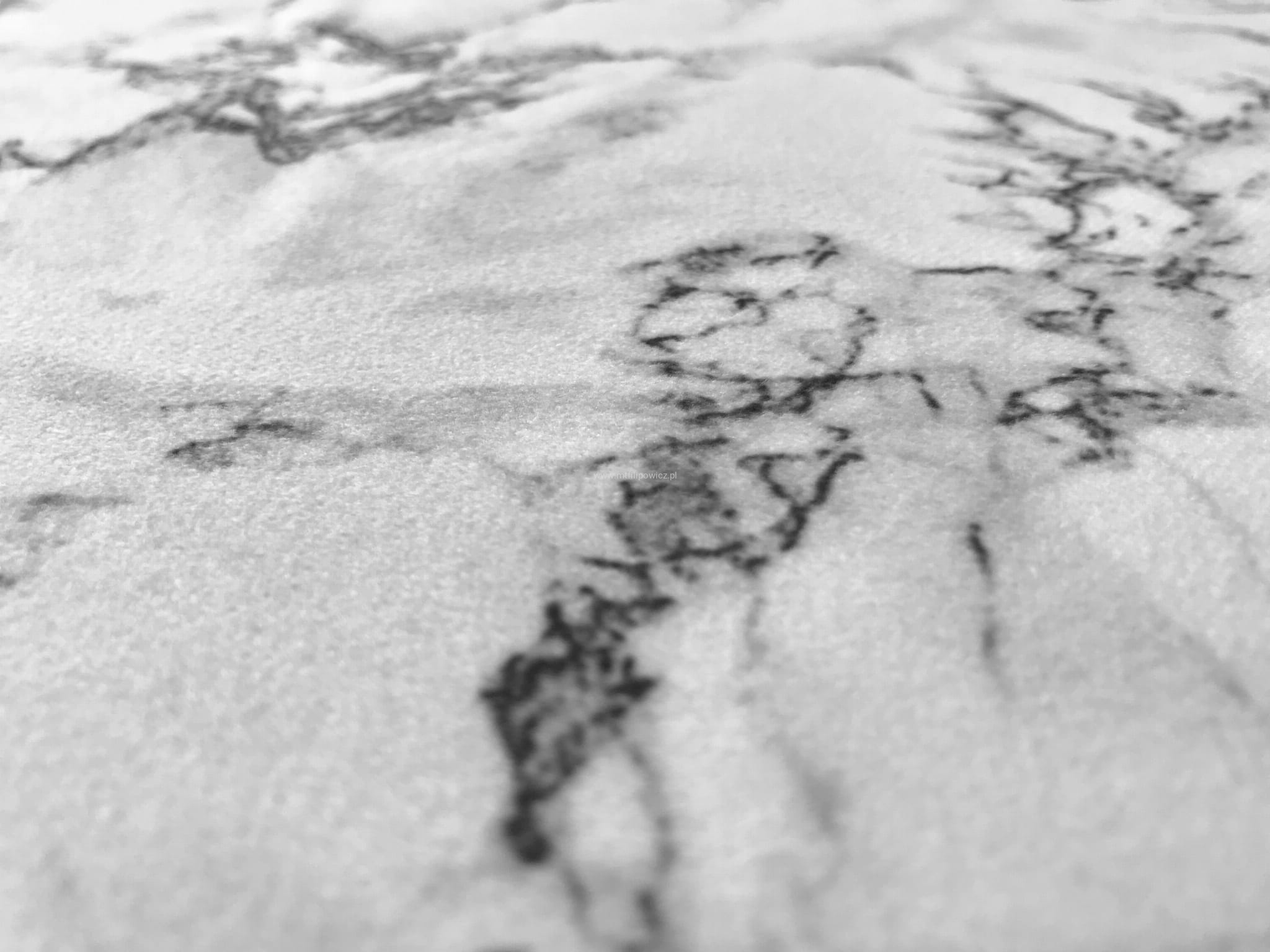 Miękka, welurowa tkanina obiciowa we wzór imitujący marmur.