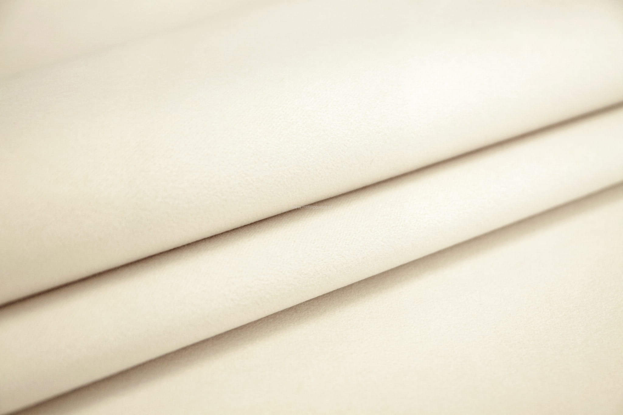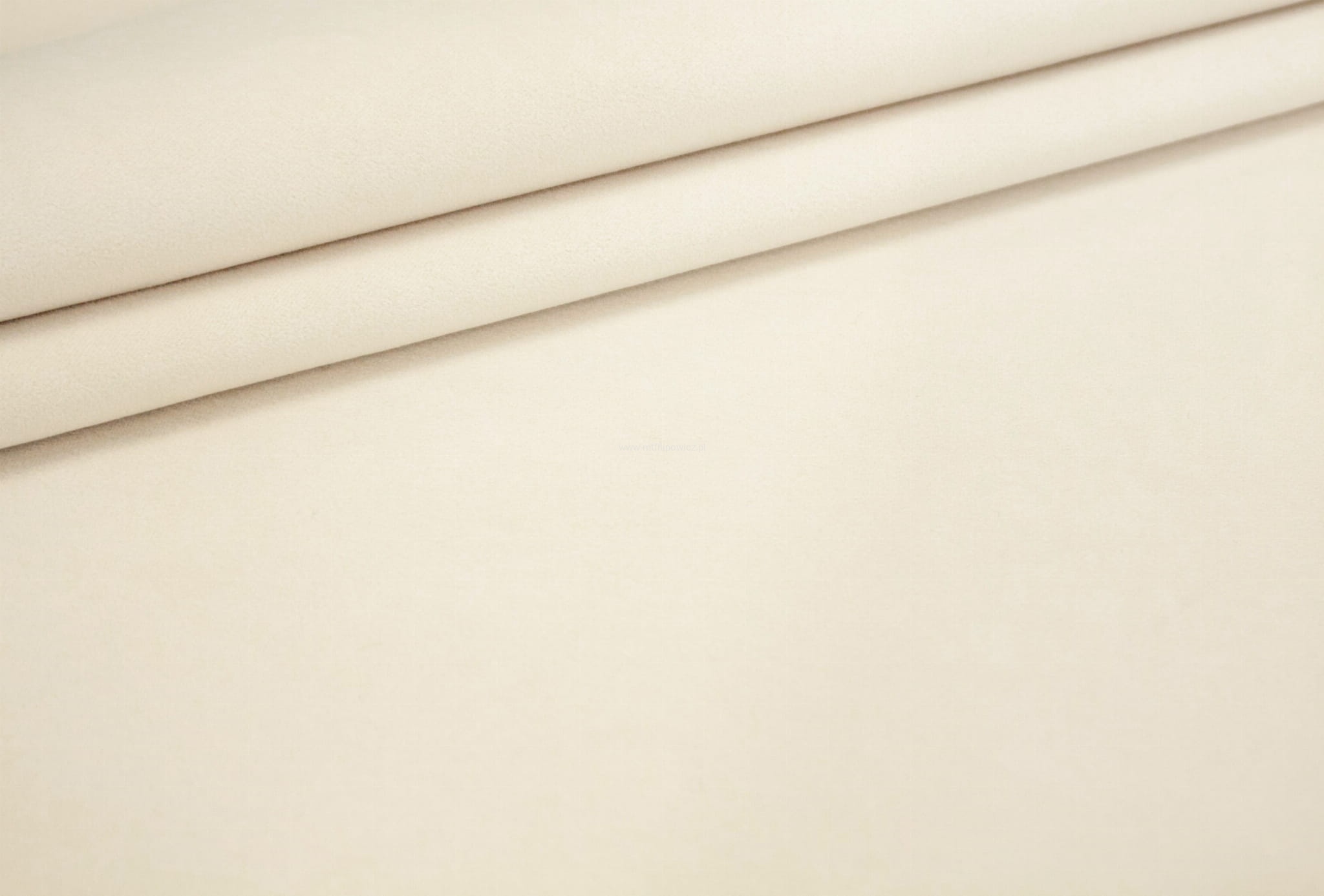 Elegancki, ponadczasowy, mięsisty i gruby welur o bardzo wysokiej gramaturze 430 g/m2 w kolorze bardzo jasnego kremu.
