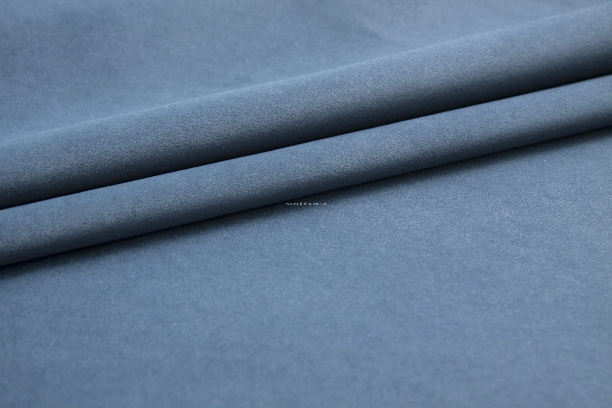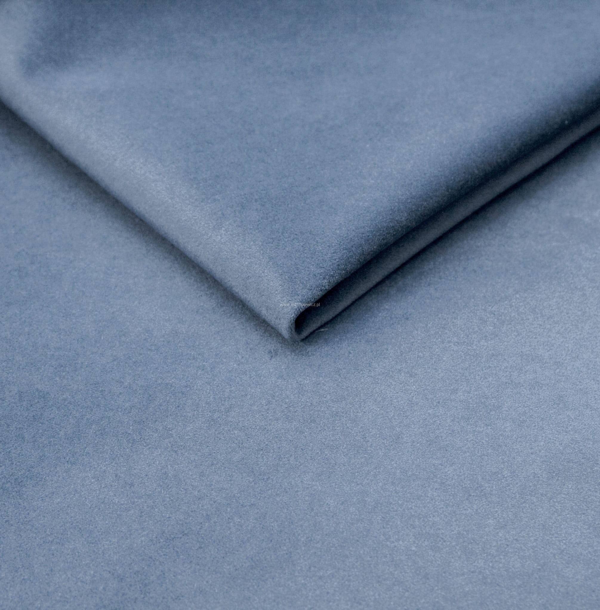 Elegancki, ponadczasowy, mięsisty i gruby welur o bardzo wysokiej gramaturze 430 g/m2 w kolorze niebieskim.