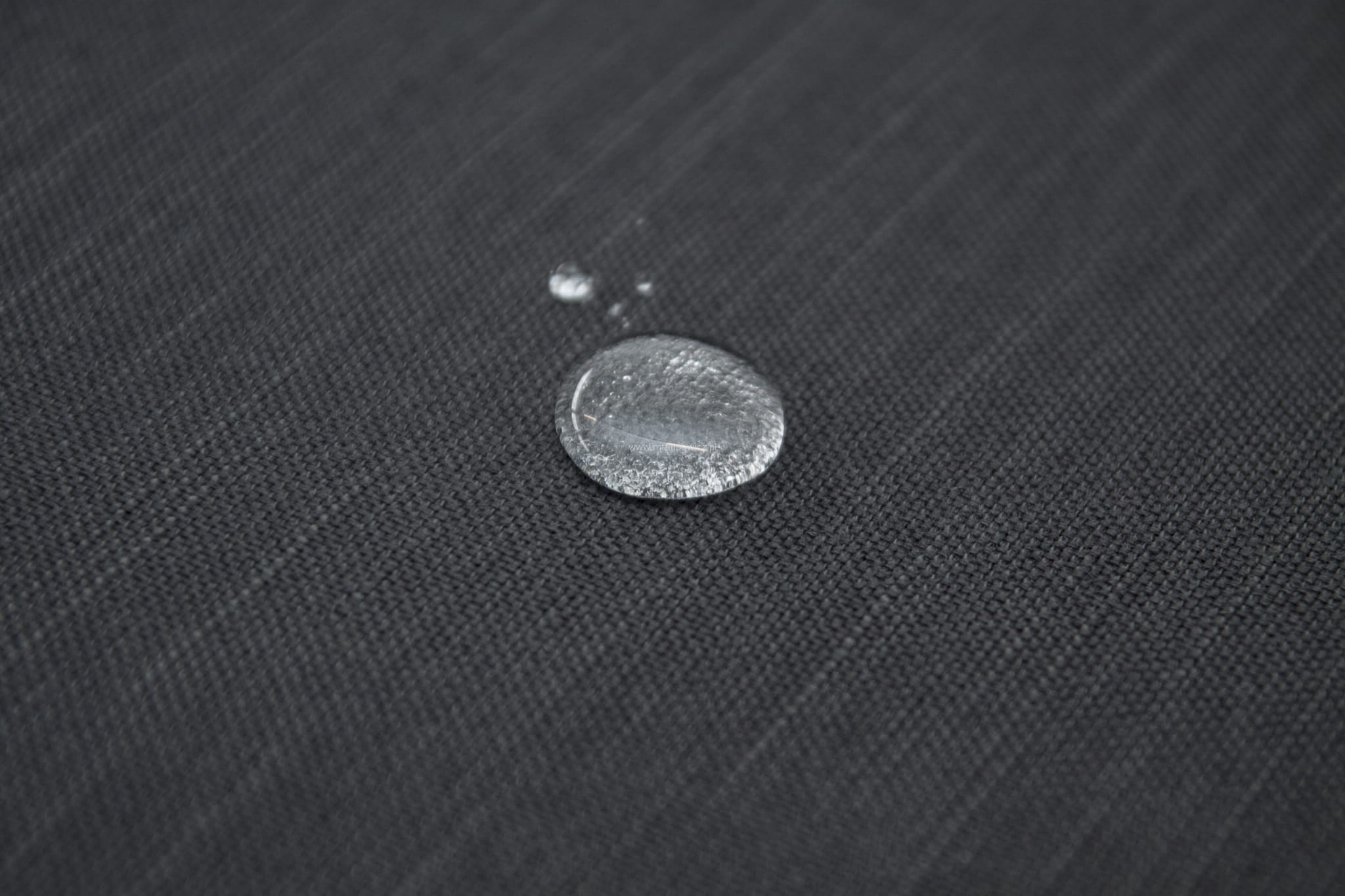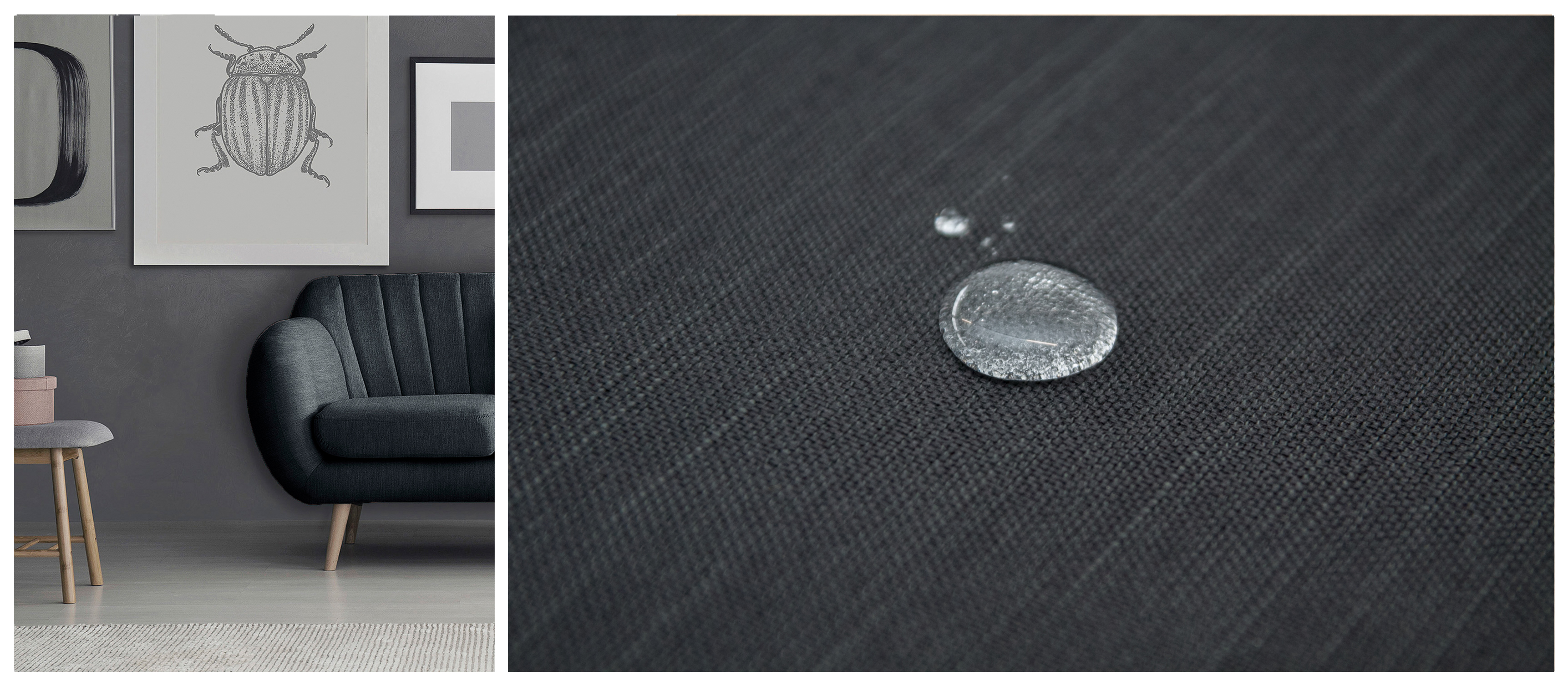 Tkanina MELVA pokryta jest specjalną warstwą ochronną, tworząca hydrofobową powłokę zabezpieczającą przed szybkim przesiąkaniem płynów. Zapobiega to natychmiastowemu absorbowaniu wody przez tkaninę, sprawiając że ciecz skrapla się na powierzchni materiału. Dzięki temu mamy czas na to, aby przy użyciu miękkiej ściereczki bądź ręcznika papierowego, delikatnie odsączyć rozlaną ciecz.