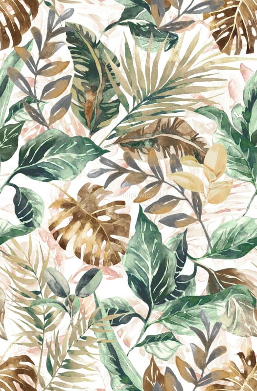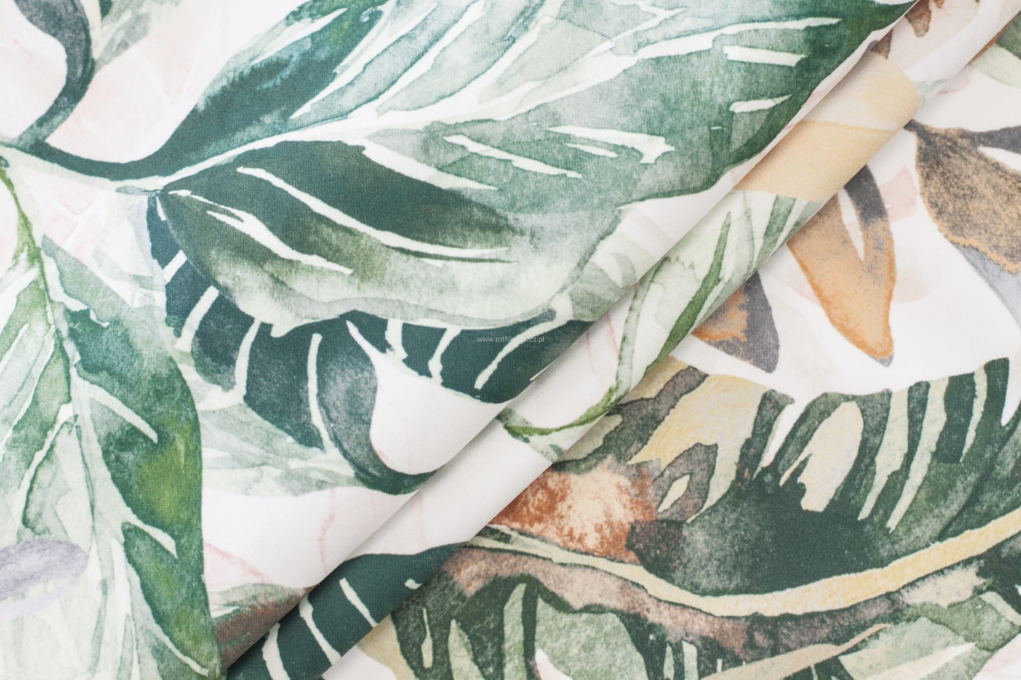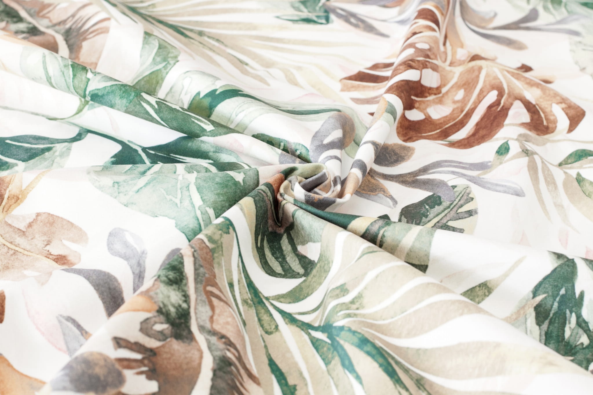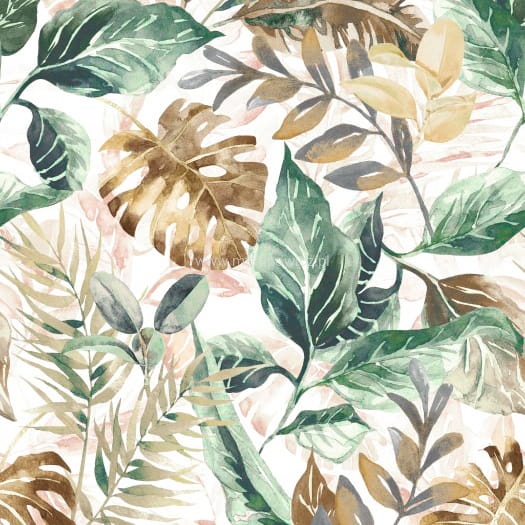TKANINA OBICIOWA PASTELOWE LIŚCIE BOHO