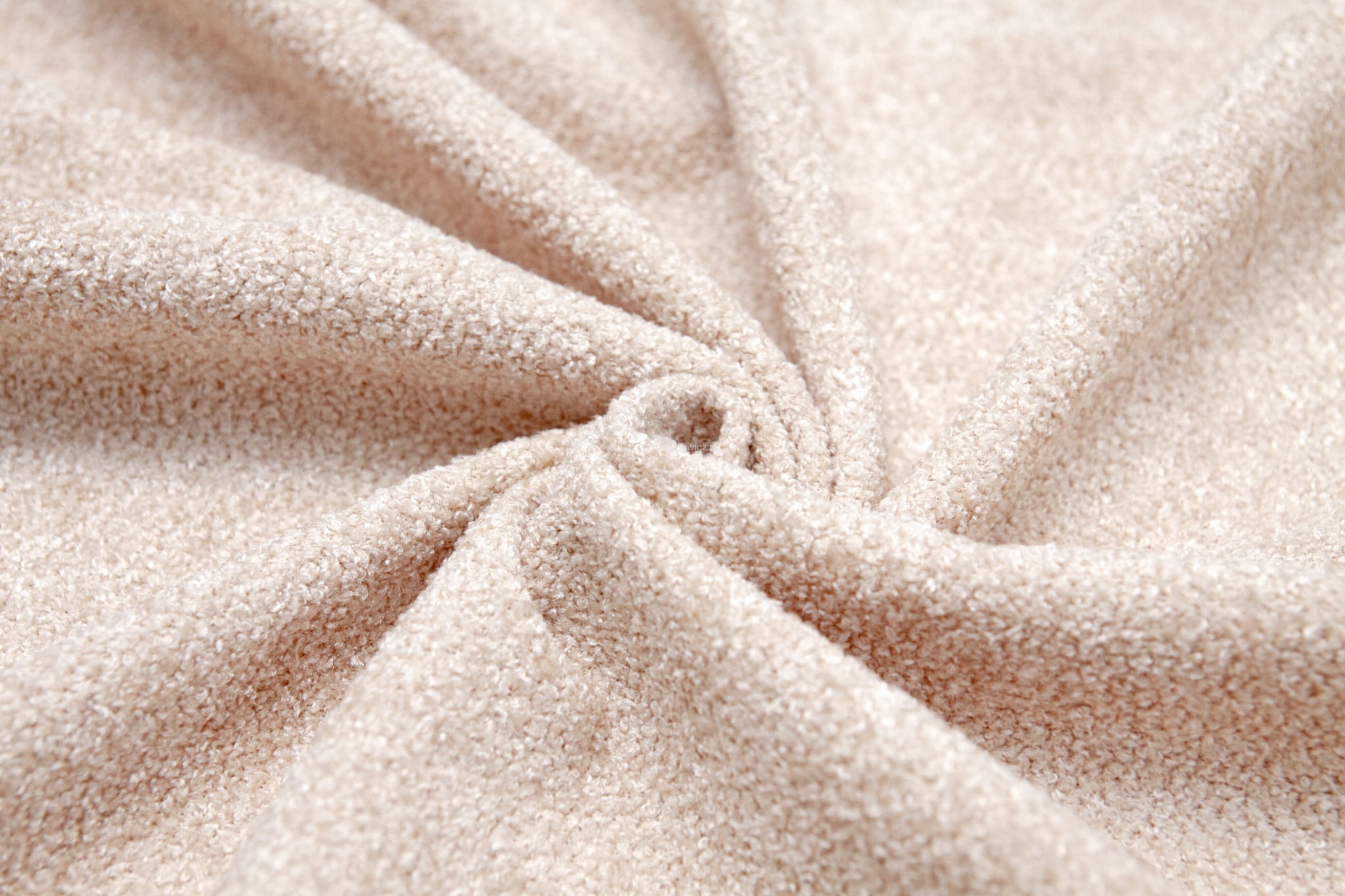 Puuzo to mocna i mięsista (430 g/m2) tkanina o wyższym, supełkowym splocie . Materiał jest gęsty, miękki i przyjemny w dotyku jak sweter z szenili.
