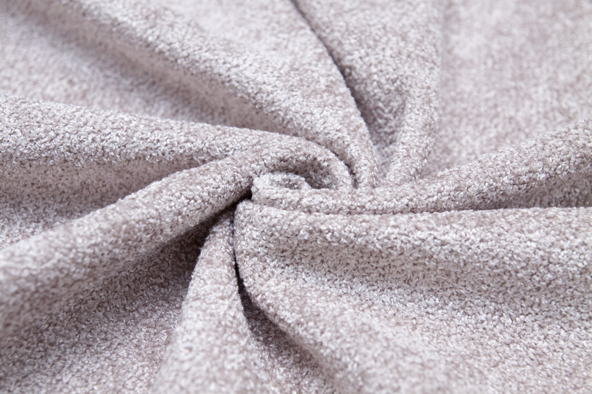 Puuzo to mocna i mięsista (430 g/m2) tkanina o wyższym, supełkowym splocie . Materiał jest gęsty, miękki i przyjemny w dotyku jak sweter z szenili.