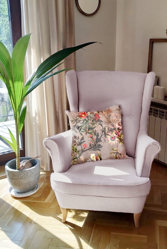 Tkanina nie jest niczym podklejana dzięki czemu bardzo łatwo poddaje się przy tapicerowaniu nawet skomplikowanych elementów.