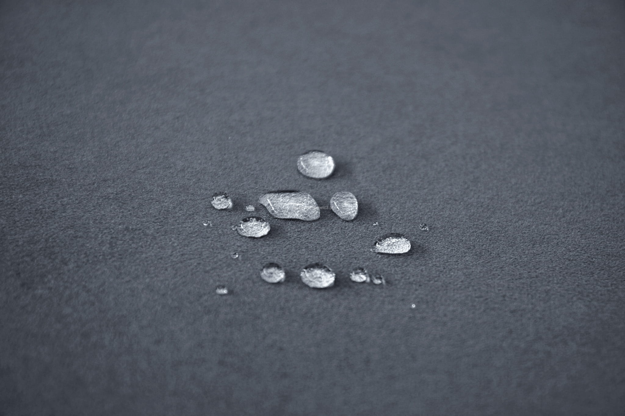 Tkanina Velvet pokryta jest specjalną warstwą ochronną, tworząca hydrofobową powłokę zabezpieczającą przed szybkim przesiąkaniem płynów. Zapobiega to natychmiastowemu absorbowaniu wody przez tkaninę, sprawiając że ciecz skrapla się na powierzchni materiału. Dzięki temu mamy czas na to, aby przy użyciu miękkiej ściereczki bądź ręcznika papierowego, delikatnie odsączyć rozlaną ciecz. Z tkaniny usuniemy również wszystkie inne płyny.