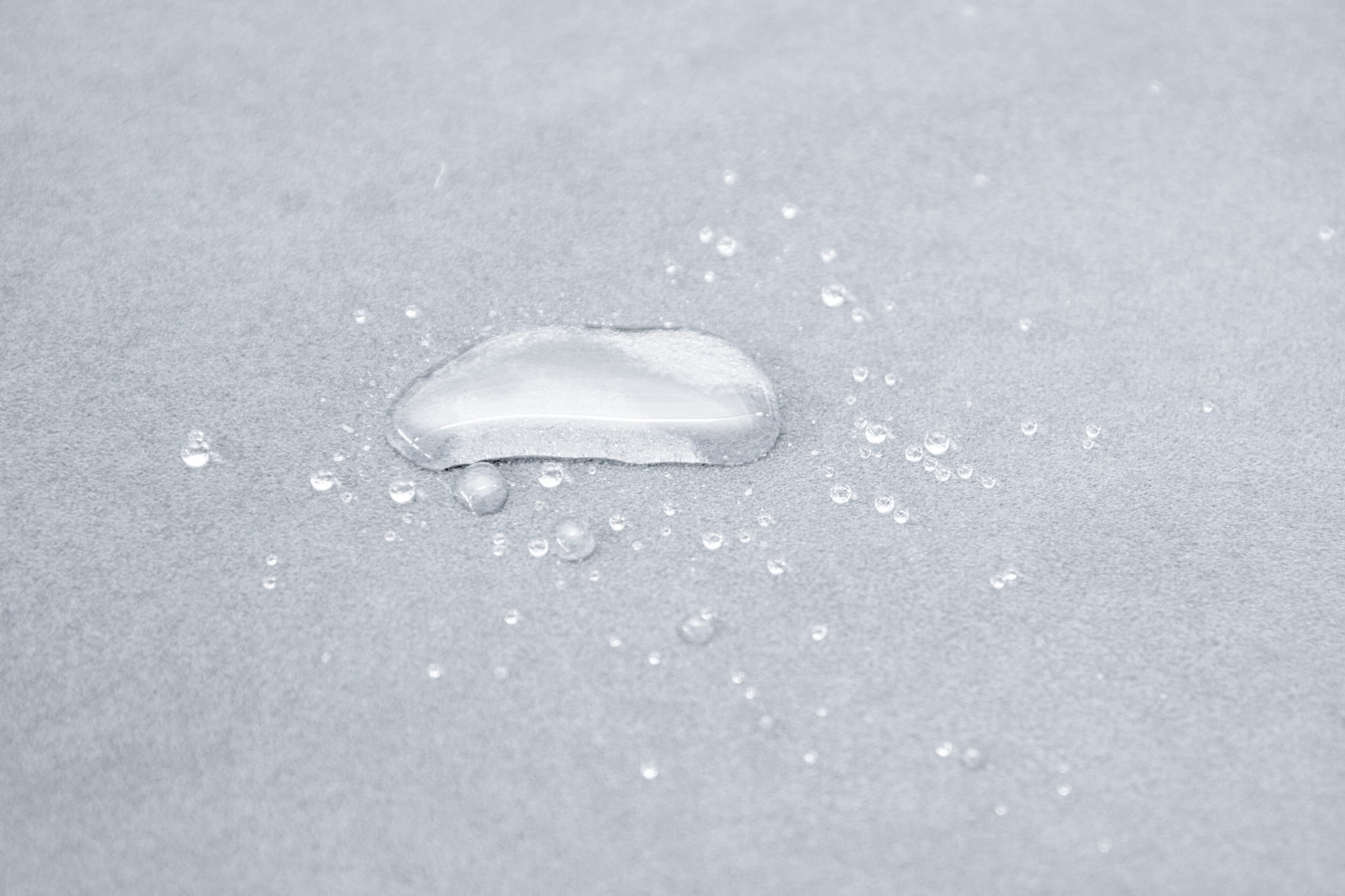 Tkanina Velvet pokryta jest specjalną warstwą ochronną, tworząca hydrofobową powłokę zabezpieczającą przed szybkim przesiąkaniem płynów. Zapobiega to natychmiastowemu absorbowaniu wody przez tkaninę, sprawiając że ciecz skrapla się na powierzchni materiału. Dzięki temu mamy czas na to, aby przy użyciu miękkiej ściereczki bądź ręcznika papierowego, delikatnie odsączyć rozlaną ciecz. Z tkaniny usuniemy również wszystkie inne płyny.