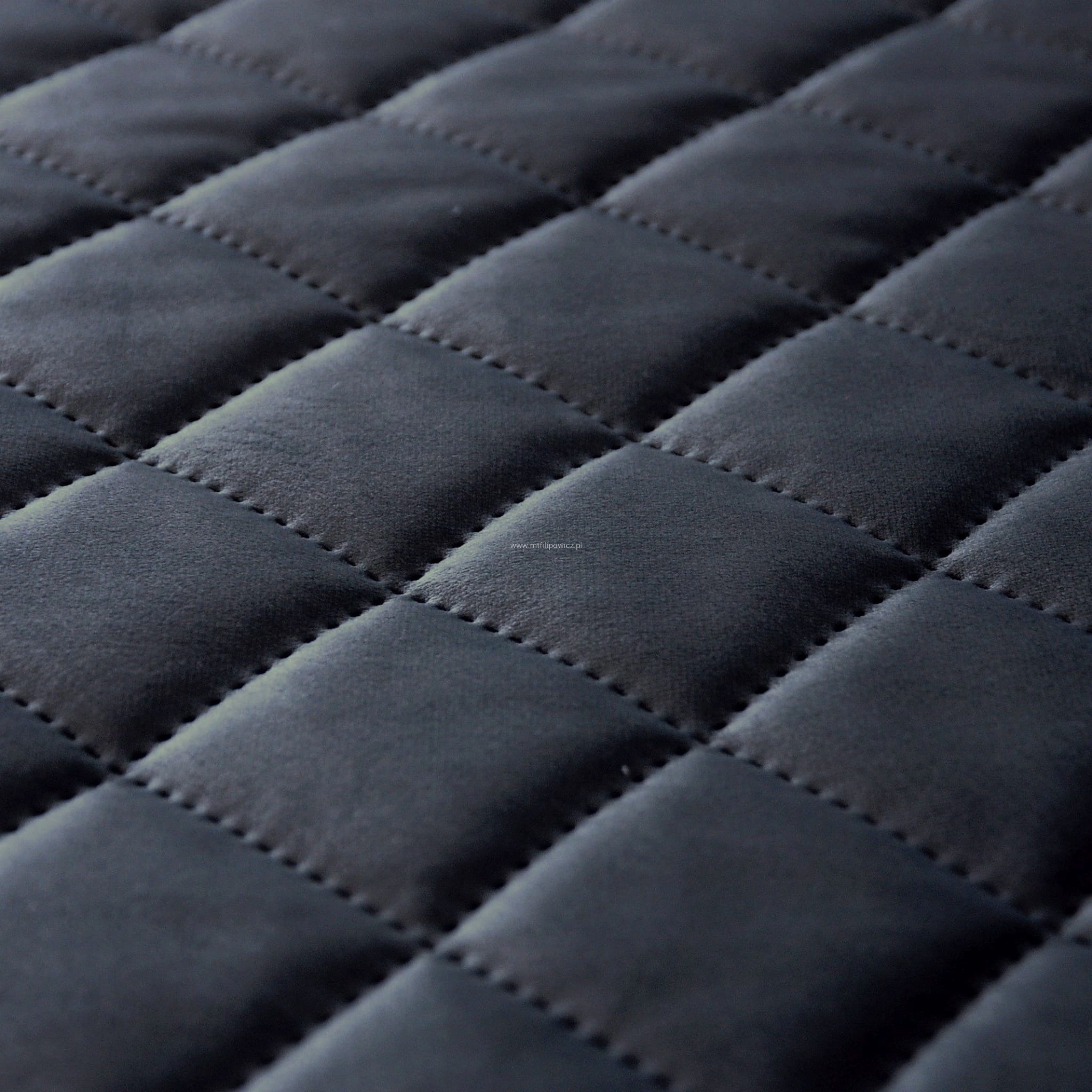 Velveto aksamit obiciowy pikowany ultradźwiękowo w caro 5cm x 5cm z apreturą, kolor antracyt 18 (odcień szarośći).