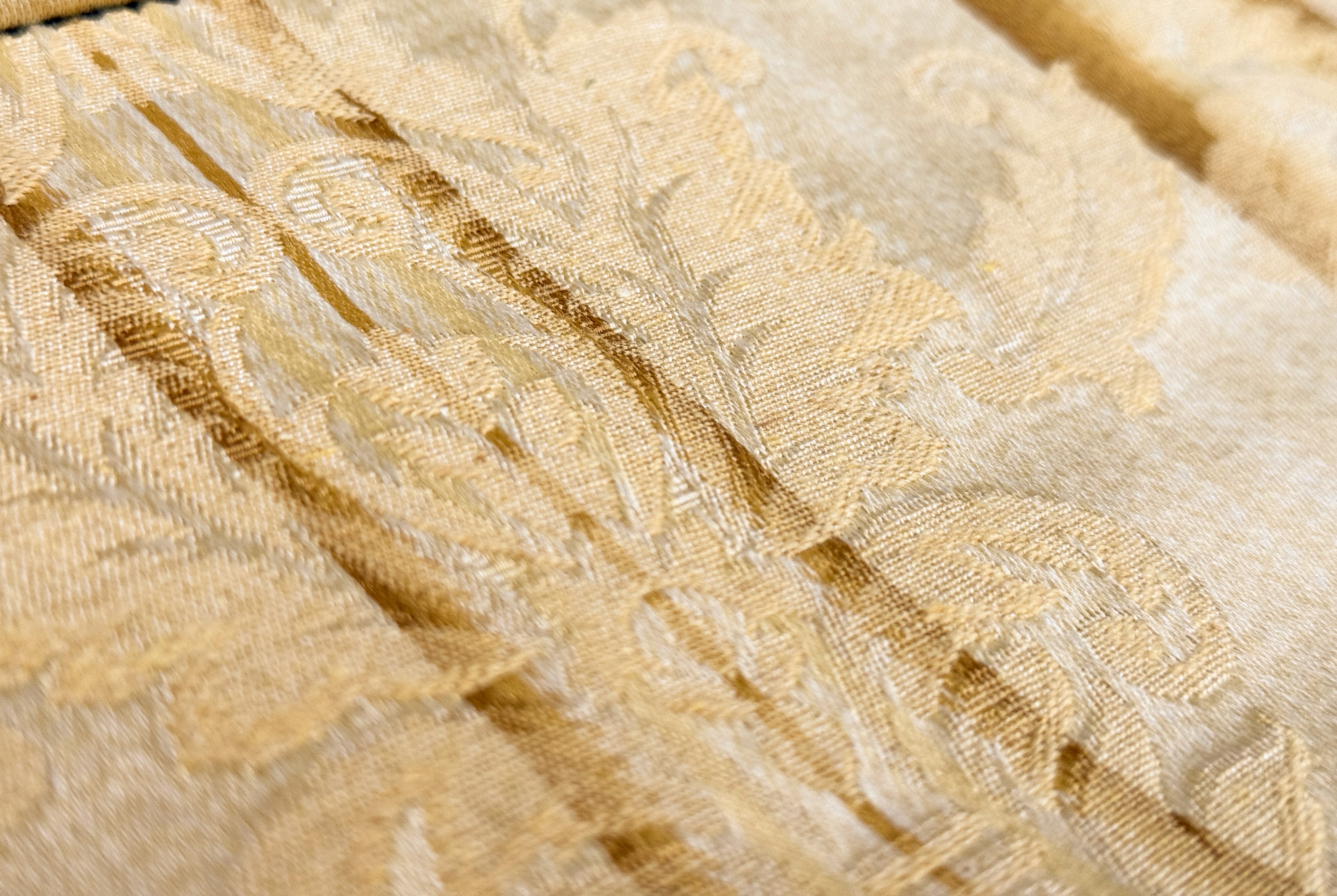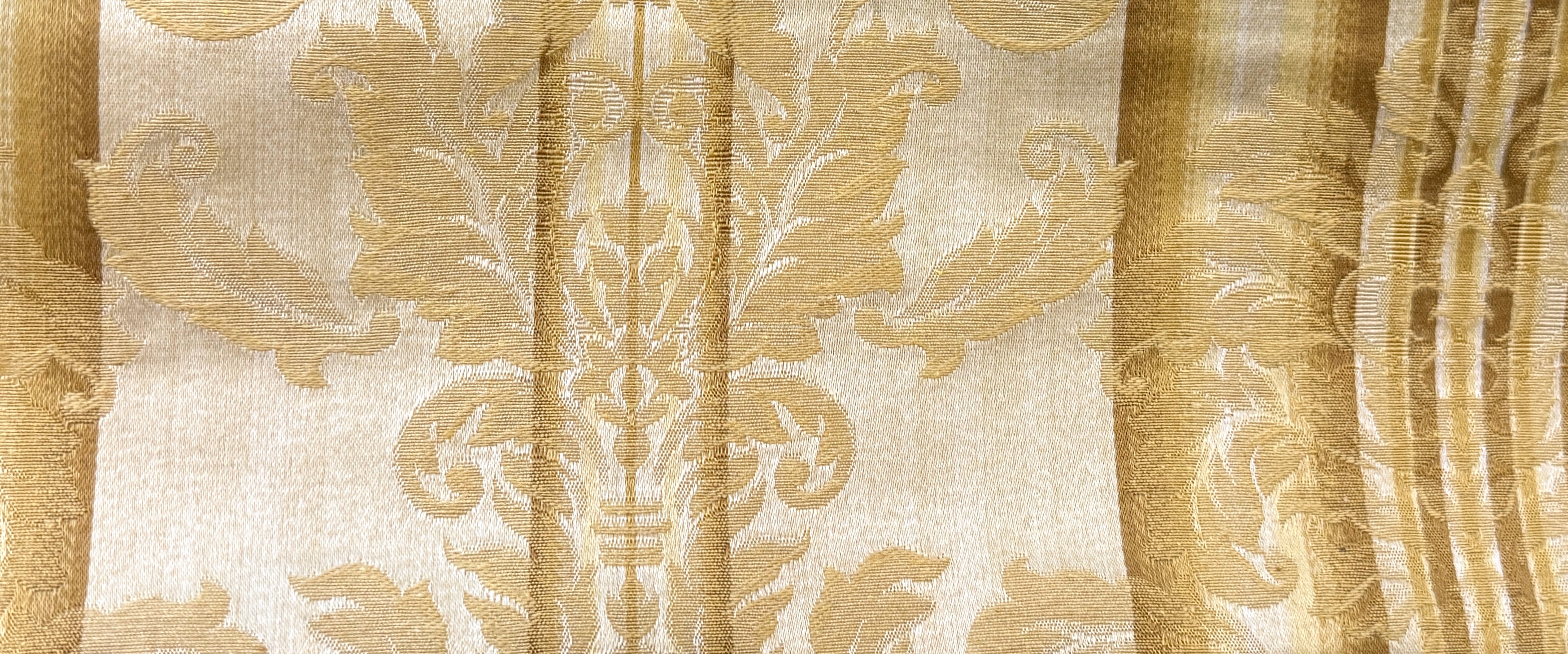 Włoski materiał Castello to elegancka tkanina tapicerska o wyrazistym, klasycznym charakterze. Jasny złoty połączony ze złotymi, ornamentalnymi zdobieniami tworzy efekt luksusu inspirowanego stylami pałacowymi i secesyjnymi. Subtelne pasy dodają harmonii i podkreślają dekoracyjny rytm wzoru, sprawiając, że materiał pięknie układa się na meblach.