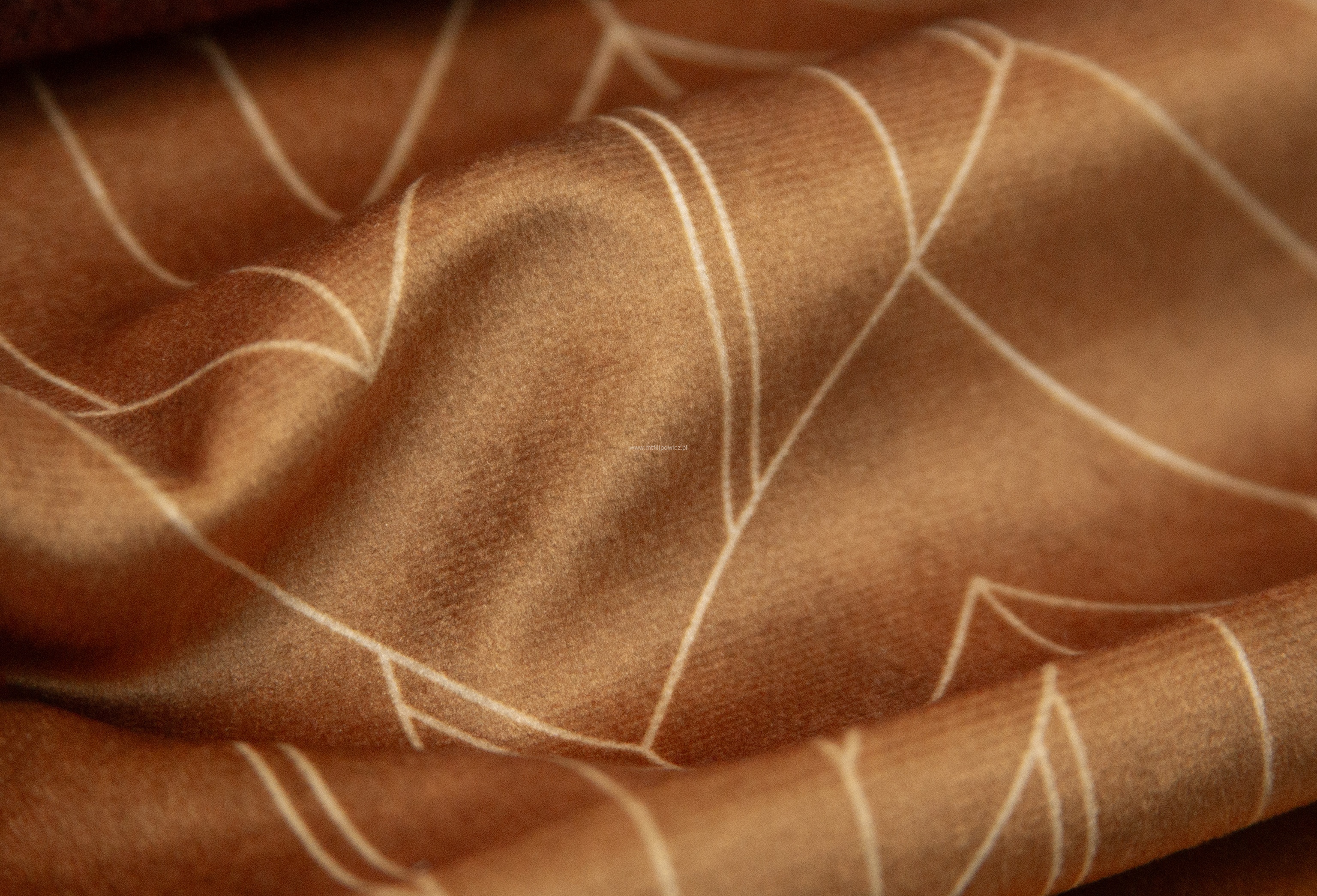 Decoline to welurowa tkanina inspirowana elegancją stylu art déco — pełna symetrii, wyrazistych linii i ponadczasowego szyku. Eleganckie kolory subtelnie połyskują dzięki półmatowemu wykończeniu, a złote geometryczne linie podkreślają luksusowy charakter materiału, tworząc niezwykle efektowny wzór.