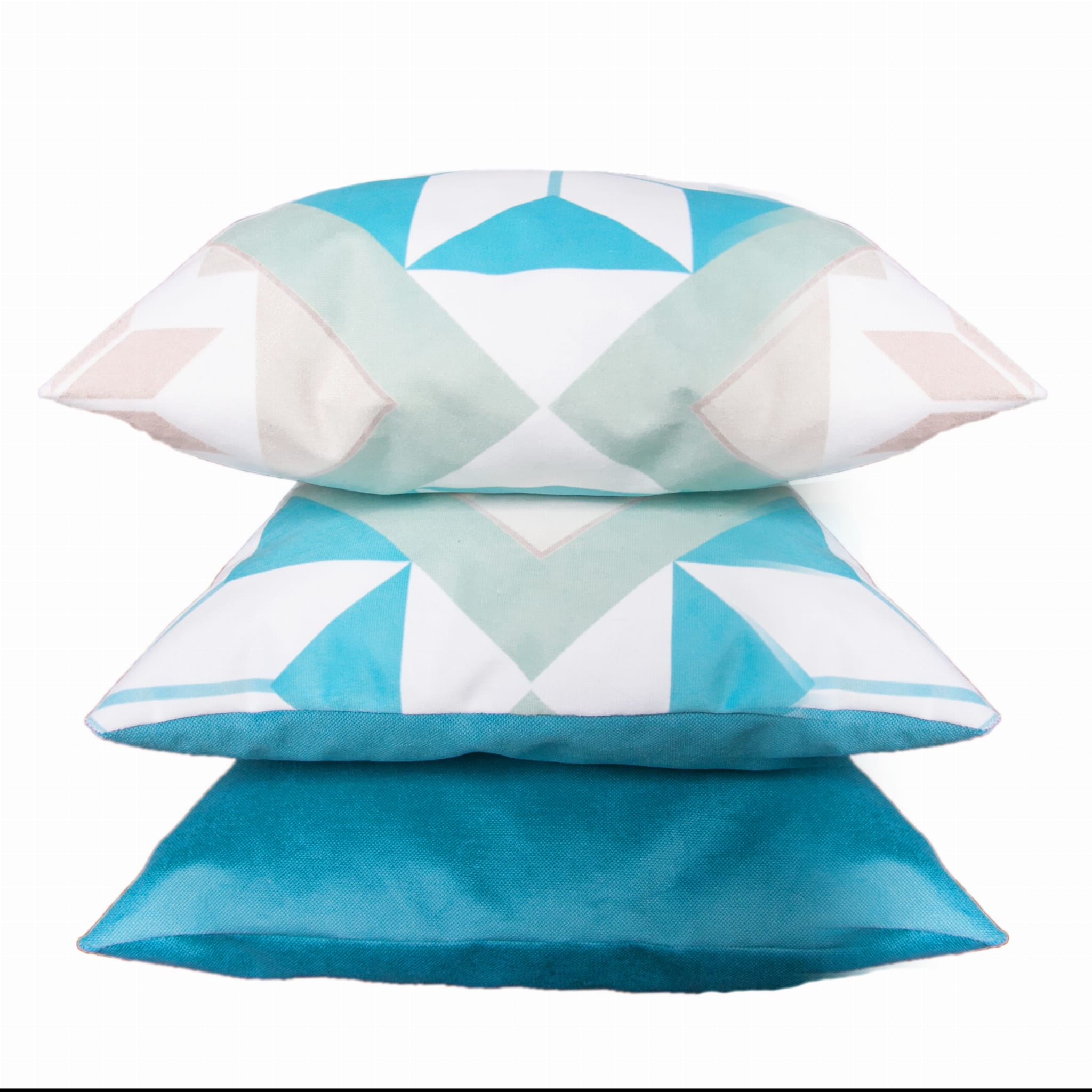 ZESTAW TRZECH PODUSZEK DEKORACYJNYCH PORTUGALIA TURKUS