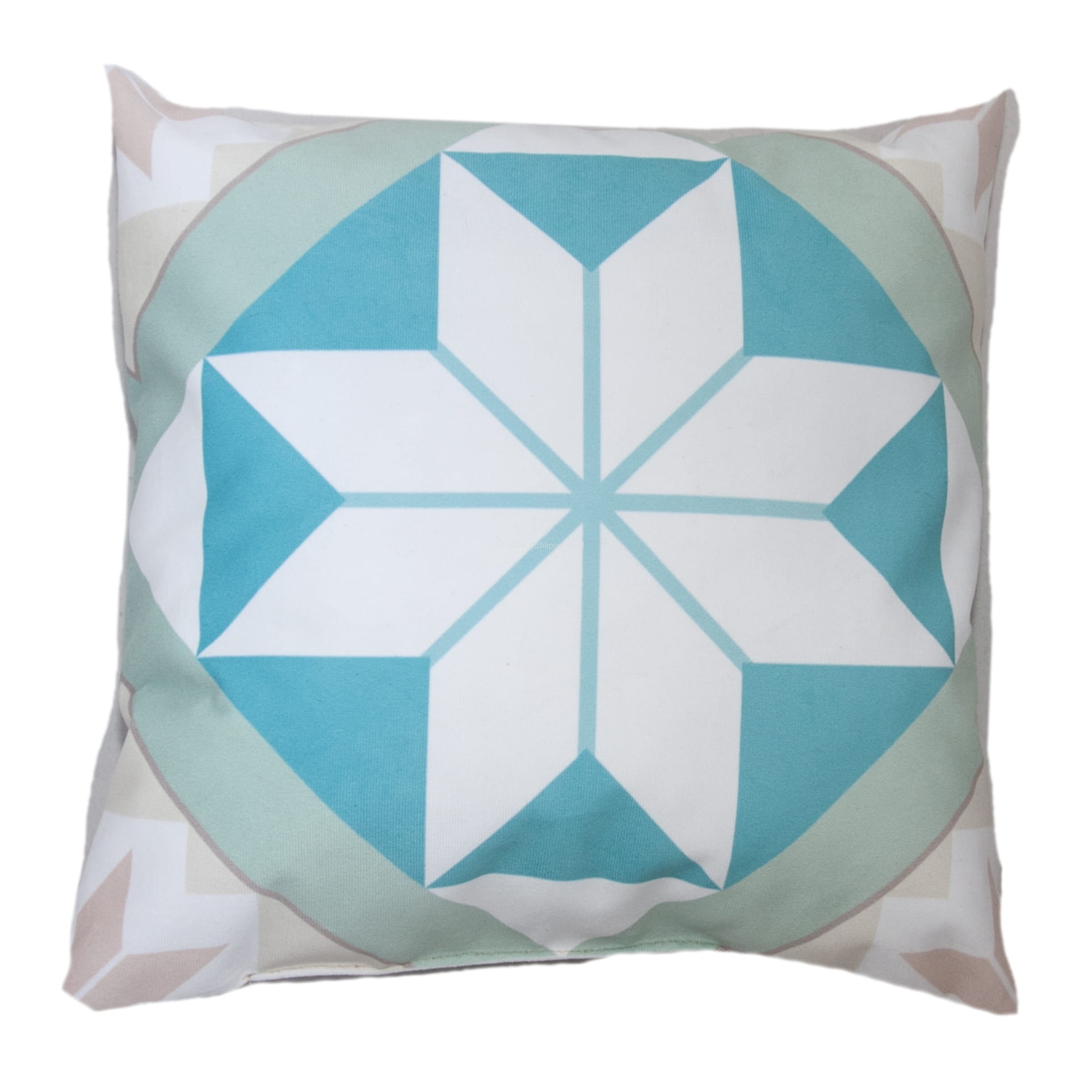 Dwie poduszki ze wzorem ( jak na zdjęciu) , jedna gładka w kolorze turkusowym.